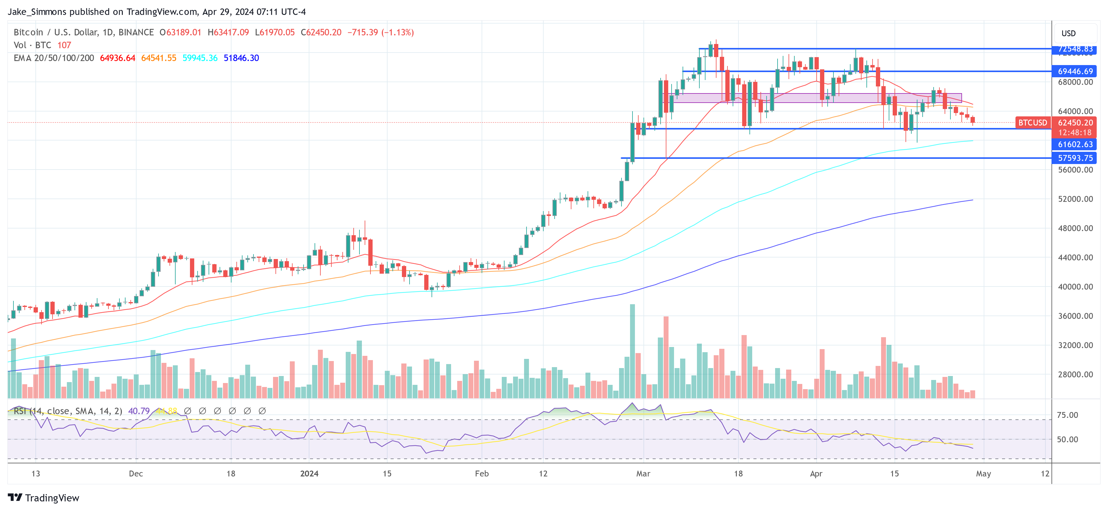 At press time, BTC traded at $62,450.